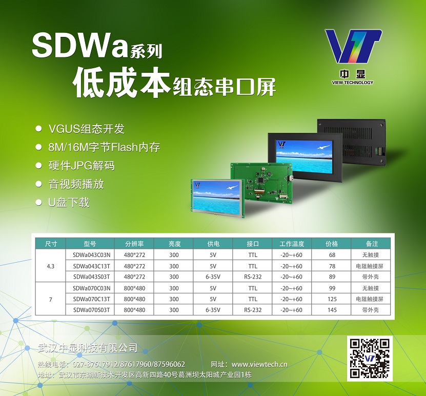 SDWa系列低成本VGUS組態(tài)串口屏 全面上市