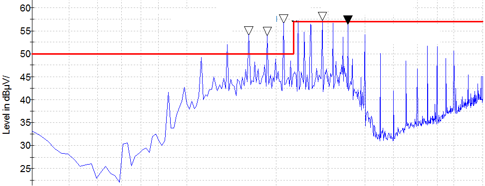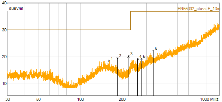 圖2 串口屏SDWb070T84輻射發射騷擾度波形(僅供參考)