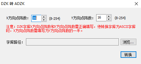 對于已有DZK格式的字庫,想要在不改變字形的情況下,減小字庫文件大小的用戶可以嘗試該功能將DZK格式字庫轉換成ADZK格式的字庫,詳見下文(五)。 |